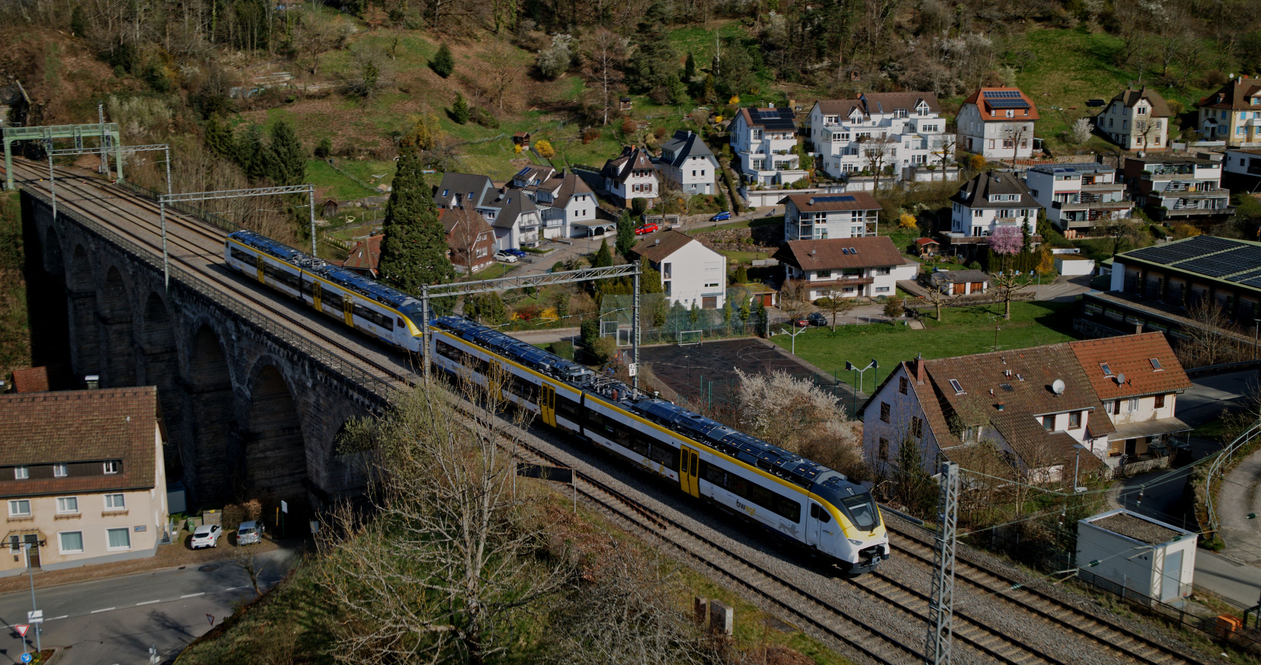 The hybrid trains will initially be used on the routes from Offenburg to Bad Griesbach and from Offenburg to Hornberg. They replace the diesel-powered Regio Shuttle RS1. Plans call for gradually extending hybrid service on other routes in the network. In preparation for introducing the Siemens Mobility trains, the network timetable was adjusted in mid-December 2023. Since then, trains in the Kinzig valley, for example, have been running straight through from Offenburg via Hausach to Hornberg without requiring changes. And passengers traveling to Freudenstadt usually have to change trains in Hausach, since the battery trains can serve the Freudenstadt station on the regular schedule only when an additional switch connection has been installed there.
