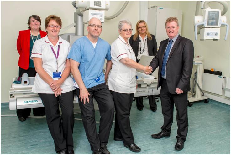 [Left to Right] Alex Edwards, Product Specialist at Siemens Healthcare; Yvette Delaurney, Advanced Practitioner Radiography; Shaun Waters, Senior Radiographer; Kathryn Dixon, Clinical Modality Manager of General, Interventional, Mammography and Fluoroscopy at Eastbourne District General Hospital; Joanne McAuliffe, Product Manager at Siemens Healthcare and Paul Vaughan, Regional Sales Manager at Siemens Healthcare.