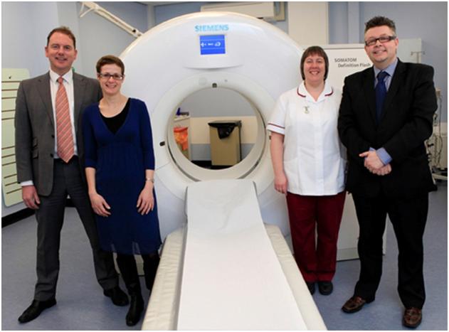 Freeman Hospital, has installed a SOMATOM® Definition Flash from Siemens Healthcare. Left to right: Neil Lincoln, Regional Sales Manager at Siemens Healthcare; Dr Michelle Muller, Consultant Radiologist; Sharon Iles, Cross site CT Superintendent Radiographer; Graeme Hughes, Senior Superintendent Radiographer and Manager at Freeman Hospital.