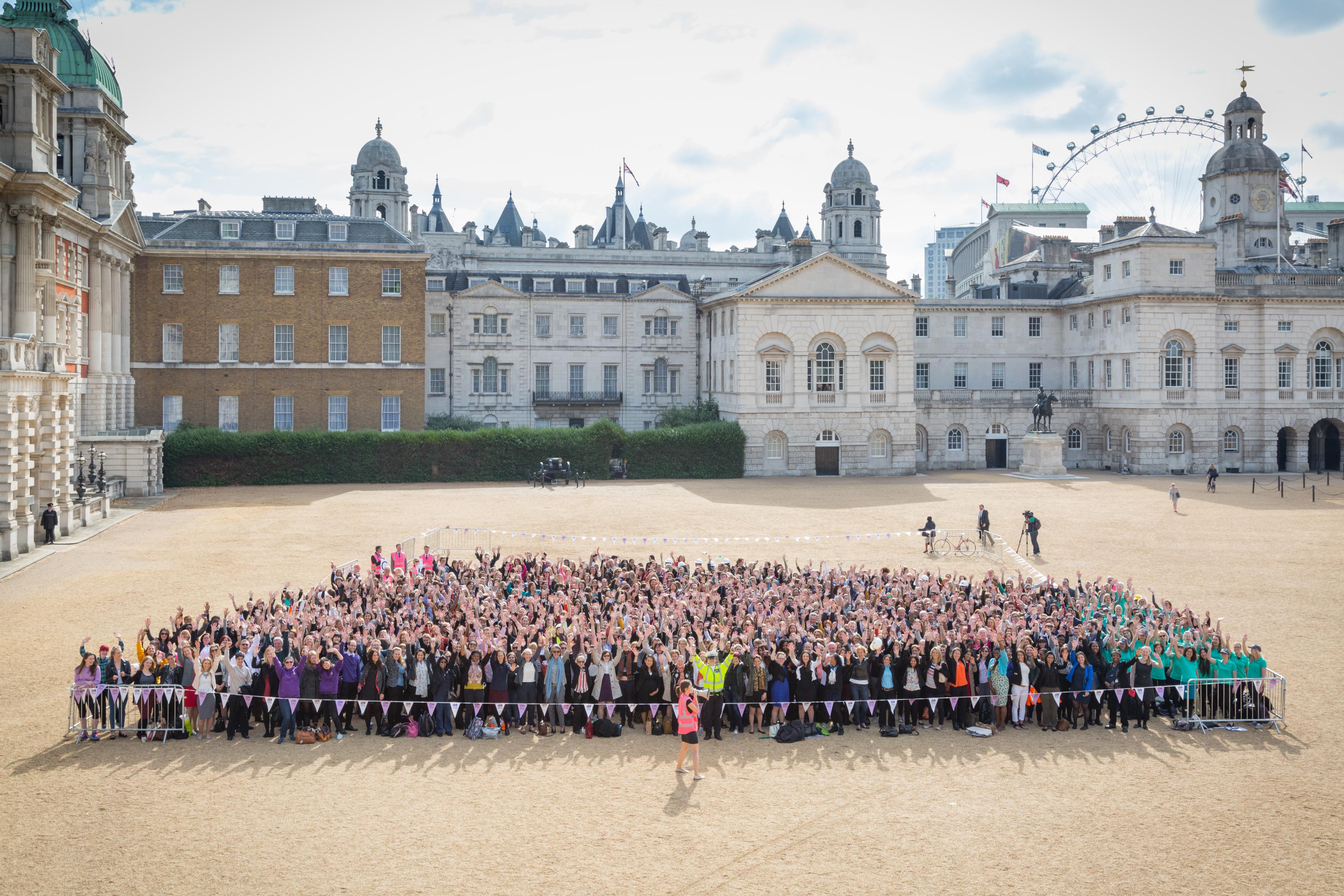 Some 864 men and women joined Transport for London Commissioner Sir Peter Hendy CBE in Whitehall on Tuesday 23 June to celebrate National Women in Engineering Day 2015, breaking the GUINNESS WORLD RECORDS title for the most people performing a jumping high five simultaneously. The existing GUINNESS WORLD RECORDS title stood at 150 pairs and was beaten by achieving a massive 432 pairs, as adjudicated by an official judge from Guinness World Records.