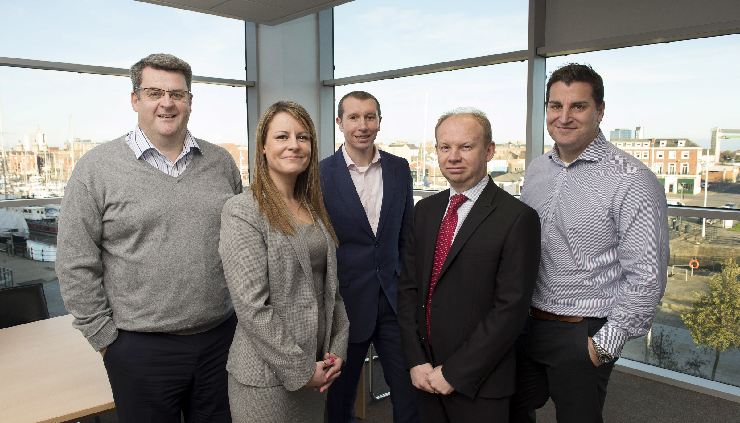 The first members of the team who will deliver Siemens wind turbine manufacturing and assembly facility in Hull have moved into new offices in the city. (Left to right: Finbarr Dowling, Charlene Swann, Kevin Wilkinson, Shaun Cray ,Ross Dean)