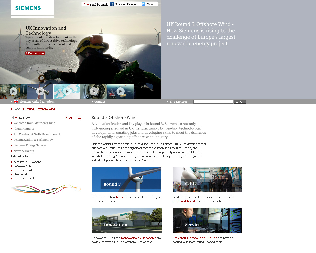 The website provides comprehensive information about the Round 3 programme. Development of the site was led by Matthew Knight, Siemens’ business development director for Round 3 in the UK, and is focused on communicating about the programme, and Siemens role within it to as wide an audience as possible. As Knight explains: