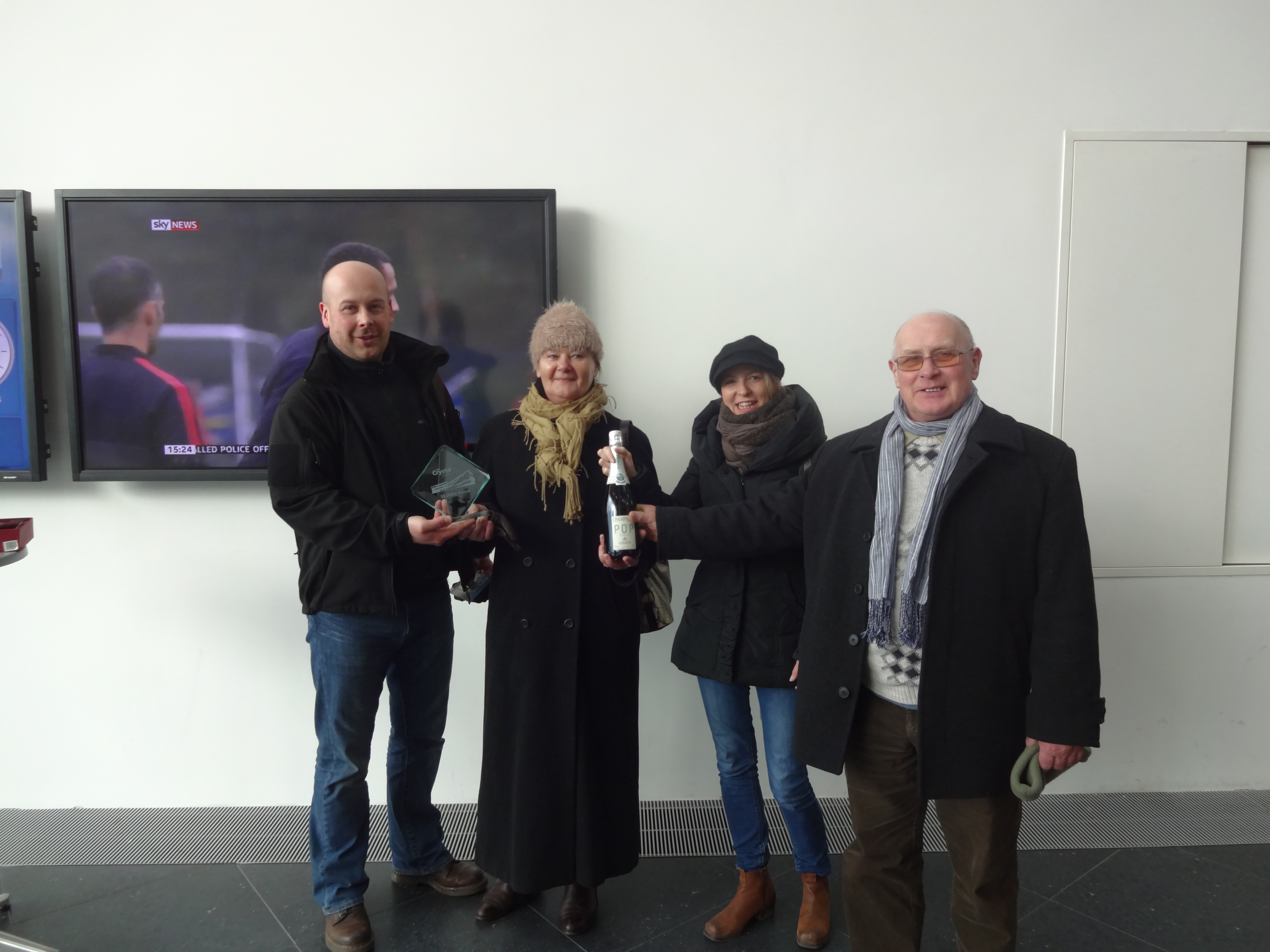 Jo Wajada was visiting the Crystal with her husband and his parents, whilst on holiday from Poland over Easter. The family came to the Crystal after reading about the building and its exhibition on the internet. To mark the occasion, the family was presented with an engraved '50,000th visitor' glass trophy and a bottle of champagne. Jo Wajada said: “The exhibition is really interesting and we are looking forward to learning more about sustainability. We're thrilled to be the 50,000th visitors at the Crystal.”